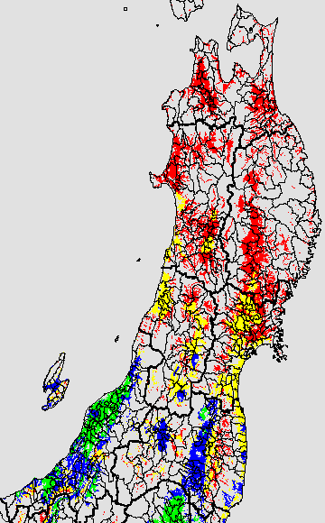 安全作期の策定にある気温指標のうち、中苗・成苗移植の安全早限日の気温指標13.0℃を用いて表示しています。13.0℃以下については1℃刻みで表示し、可能域がどのように推移するかをみるものです。