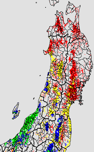 安全作期の策定にある気温指標のうち、中苗・成苗移植の安全早限日の気温指標13.5℃を用いて表示しています。13.5℃以下については1℃刻みで表示し、可能域がどのように推移するかをみるものです。