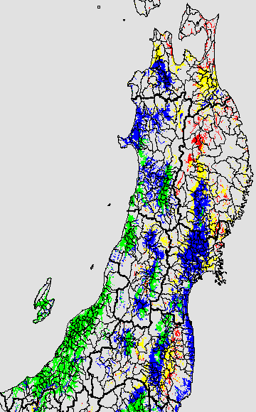 安全作期の策定にある気温指標のうち、中苗・成苗移植の安全早限日の気温指標13.0℃を用いて表示しています。13.0℃以下については1℃刻みで表示し、可能域がどのように推移するかをみるものです。