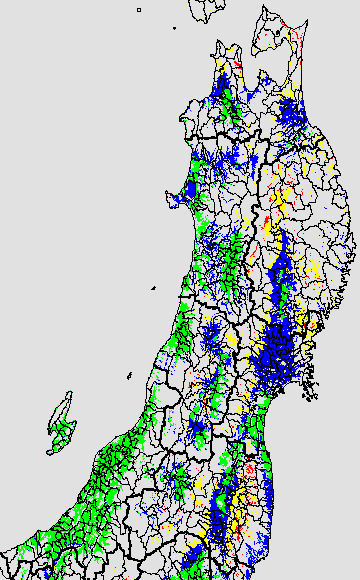 安全作期の策定にある気温指標のうち、中苗・成苗移植の安全早限日の気温指標13.0℃を用いて表示しています。13.0℃以下については1℃刻みで表示し、可能域がどのように推移するかをみるものです。