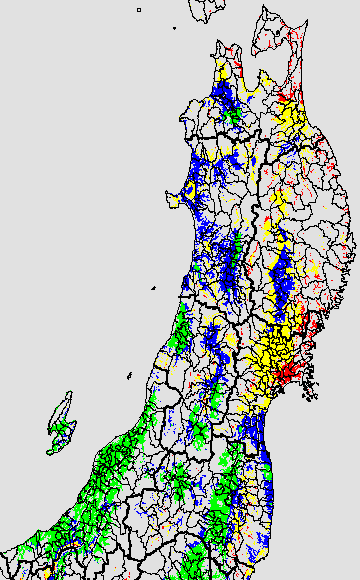 各種文献などを参考にして、分げつ形成に関する限界温度を平均気温で15℃と設定し、15℃以上については1℃刻みで表示します。過去7日の移動平均値で示す。分げつの形成が遅延すると予想される地域を監視するものです。