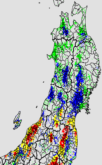 安全作期の策定にある気温指標のうち、いもち病蔓延可能日の平均気温指標20.0℃を用いて表示し、20.0℃未満については1℃刻みで表示します。過去7日の移動平均値で示す。いもち病の蔓延可能域を監視するものです。