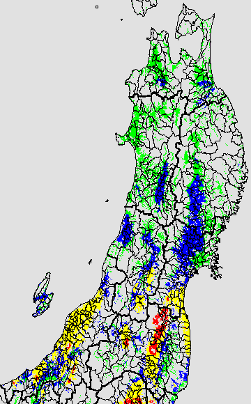 安全作期の策定にある気温指標のうち、いもち病蔓延可能日の平均気温指標20.0℃を用いて表示し、20.0℃未満については1℃刻みで表示します。過去7日の移動平均値で示す。いもち病の蔓延可能域を監視するものです。