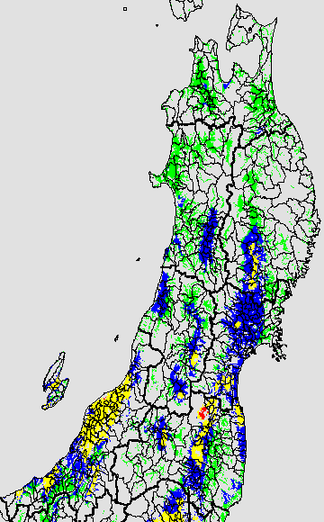 安全作期の策定にある気温指標のうち、いもち病蔓延可能日の平均気温指標20.0℃を用いて表示し、20.0℃未満については1℃刻みで表示します。過去7日の移動平均値で示す。いもち病の蔓延可能域を監視するものです。