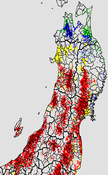 安全作期の策定にある気温指標のうち、いもち病蔓延可能日の平均気温指標20.0℃を用いて表示し、20.0℃未満については1℃刻みで表示します。過去7日の移動平均値で示す。いもち病の蔓延可能域を監視するものです。