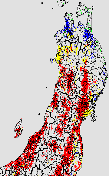 葉いもち蔓延可能域