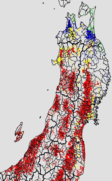 安全作期の策定にある気温指標のうち、いもち病蔓延可能日の平均気温指標20.0℃を用いて表示し、20.0℃未満については1℃刻みで表示します。過去7日の移動平均値で示す。いもち病の蔓延可能域を監視するものです。