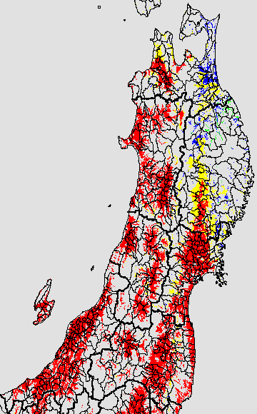 安全作期の策定にある気温指標のうち、いもち病蔓延可能日の平均気温指標20.0℃を用いて表示し、20.0℃未満については1℃刻みで表示します。過去7日の移動平均値で示す。いもち病の蔓延可能域を監視するものです。
