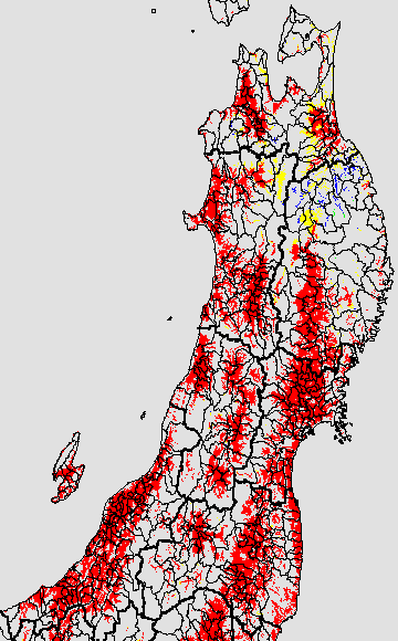 葉いもち蔓延可能域