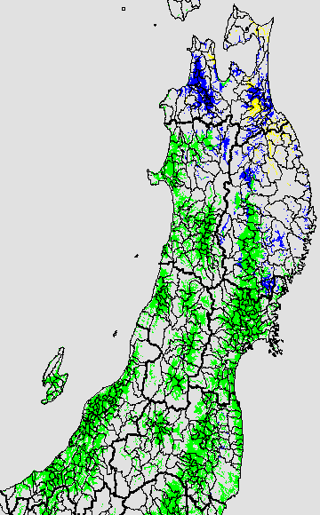 登熟停止が懸念される最低気温として、八柳(1960)は10℃を設定している。それを基に、極端な低温が来た地域の移り変わりを、最低気温の前3日の移動平均値で図示する。