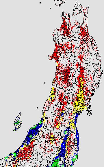 安全作期の策定にある気温指標のうち、夏作物の生育可能な気温指標10℃を用 いて表示しています。10℃以下については1℃刻みで表示し、可能域がどのように推移するかをみるものです。