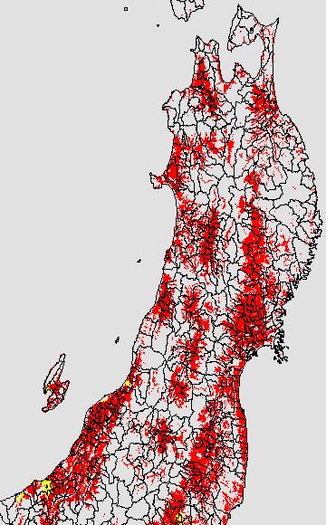 安全作期の策定にある気温指標のうち、中苗・成苗移植の安全早限日の気温指標13.0℃を用いて表示しています。13.0℃以下については1℃刻みで表示し、可能域がどのように推移するかをみるものです。