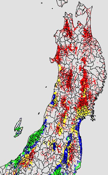 安全作期の策定にある気温指標のうち、夏作物の生育可能な気温指標10℃を用 いて表示しています。10℃以下については1℃刻みで表示し、可能域がどのように推移するかをみるものです。