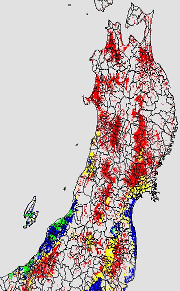 安全作期の策定にある気温指標のうち、湛水直播の安全早限日の気温指標11.5℃を用いて表示しています。11.5℃以下については1℃刻みで表示し、可能域がどのように推移するかをみるものです。