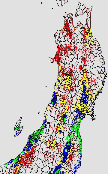 安全作期の策定にある気温指標のうち、乾田直播の安全早限日の気温指標13.5℃を用いて表示しています。13.5℃以下については1℃刻みで表示し、可能域がどのように推移するかをみるものです。