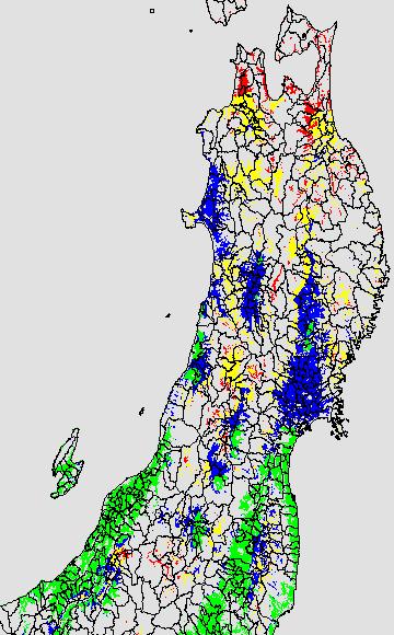安全作期の策定にある気温指標のうち、中苗・成苗移植の安全早限日の気温指標13.0℃を用いて表示しています。13.0℃以下については1℃刻みで表示し、可能域がどのように推移するかをみるものです。