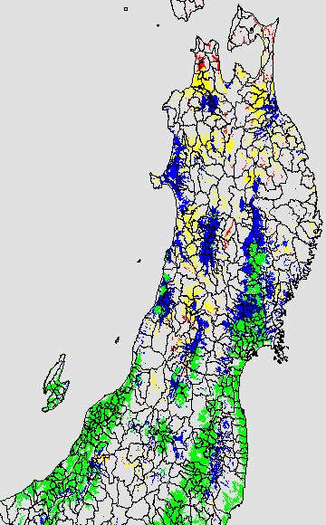 安全作期の策定にある気温指標のうち、稚苗移植の安全早限日の気温指標12.0℃を用いて表示しています。12.0℃以下については1℃刻みで表示し、可能域がどのように推移するかをみるものです。