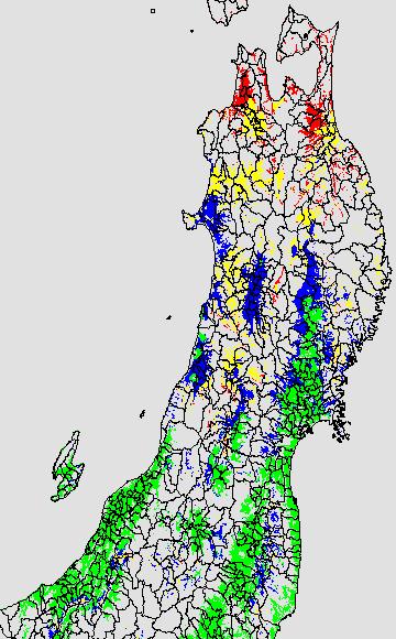 安全作期の策定にある気温指標のうち、湛水直播の安全早限日の気温指標11.5℃を用いて表示しています。11.5℃以下については1℃刻みで表示し、可能域がどのように推移するかをみるものです。