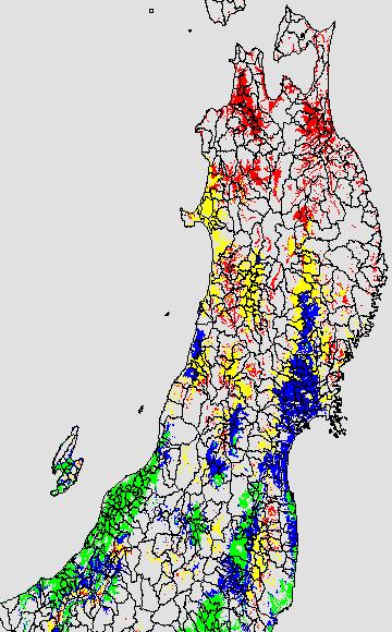 安全作期の策定にある気温指標のうち、稚苗移植の安全早限日の気温指標12.0℃を用いて表示しています。12.0℃以下については1℃刻みで表示し、可能域がどのように推移するかをみるものです。