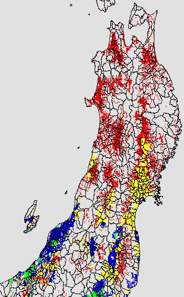 安全作期の策定にある気温指標のうち、中苗・成苗移植の安全早限日の気温指標13.0℃を用いて表示しています。13.0℃以下については1℃刻みで表示し、可能域がどのように推移するかをみるものです。