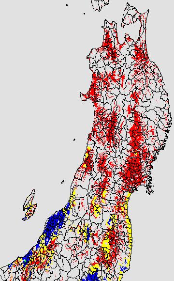 安全作期の策定にある気温指標のうち、中苗・成苗移植の安全早限日の気温指標13.0℃を用いて表示しています。13.0℃以下については1℃刻みで表示し、可能域がどのように推移するかをみるものです。
