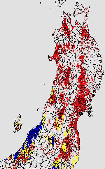 安全作期の策定にある気温指標のうち、中苗・成苗移植の安全早限日の気温指標13.0℃を用いて表示しています。13.0℃以下については1℃刻みで表示し、可能域がどのように推移するかをみるものです。