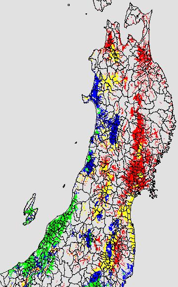 安全作期の策定にある気温指標のうち、稚苗移植の安全早限日の気温指標12.0℃を用いて表示しています。12.0℃以下については1℃刻みで表示し、可能域がどのように推移するかをみるものです。