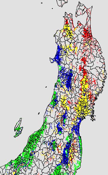 安全作期の策定にある気温指標のうち、稚苗移植の安全早限日の気温指標12.0℃を用いて表示しています。12.0℃以下については1℃刻みで表示し、可能域がどのように推移するかをみるものです。