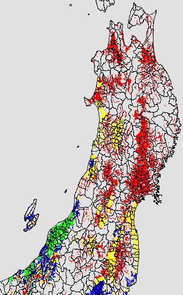 安全作期の策定にある気温指標のうち、乾田直播の安全早限日の気温指標13.5℃を用いて表示しています。13.5℃以下については1℃刻みで表示し、可能域がどのように推移するかをみるものです。