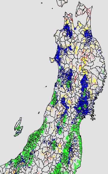 安全作期の策定にある気温指標のうち、乾田直播の安全早限日の気温指標13.5℃を用いて表示しています。13.5℃以下については1℃刻みで表示し、可能域がどのように推移するかをみるものです。