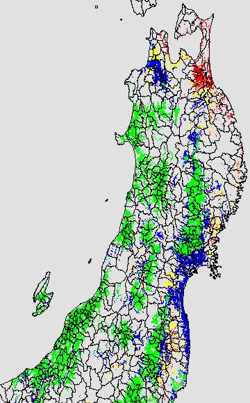 各種文献などを参考にして、草丈・根の伸長に関する限界温度を平均気温で13℃と設定し、13℃以上については1℃刻みで表示します。過去7日の移動平均値で示す。草丈や根の伸長が遅延すると予想される地域を監視するものです。