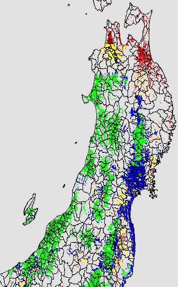 各種文献などを参考にして、分げつ形成に関する限界温度を平均気温で15℃と設定し、15℃以上については1℃刻みで表示します。過去7日の移動平均値で示す。分げつの形成が遅延すると予想される地域を監視するものです。