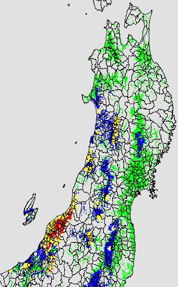安全作期の策定にある気温指標のうち、いもち病蔓延可能日の平均気温指標20.0℃を用いて表示し、20.0℃未満については1℃刻みで表示します。過去7日の移動平均値で示す。いもち病の蔓延可能域を監視するものです。