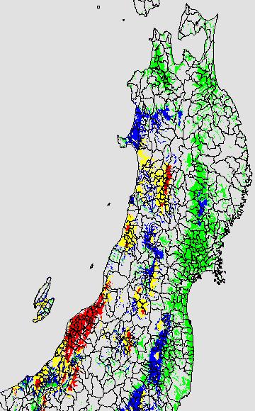 葉いもち蔓延可能域