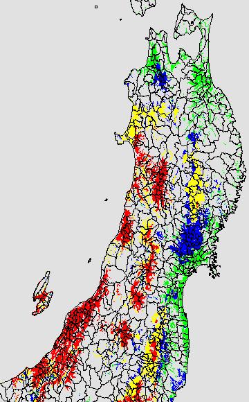 安全作期の策定にある気温指標のうち、いもち病蔓延可能日の平均気温指標20.0℃を用いて表示し、20.0℃未満については1℃刻みで表示します。過去7日の移動平均値で示す。いもち病の蔓延可能域を監視するものです。
