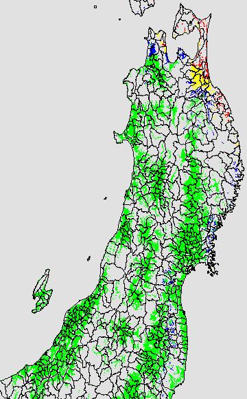 各種文献などを参考にして、分げつ形成に関する限界温度を平均気温で15℃と設定し、15℃以上については1℃刻みで表示します。過去7日の移動平均値で示す。分げつの形成が遅延すると予想される地域を監視するものです。