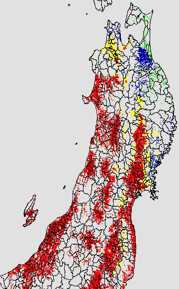 安全作期の策定にある気温指標のうち、いもち病蔓延可能日の平均気温指標20.0℃を用いて表示し、20.0℃未満については1℃刻みで表示します。過去7日の移動平均値で示す。いもち病の蔓延可能域を監視するものです。