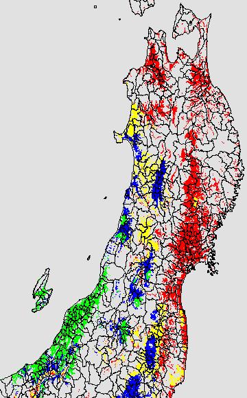 この時期平均気温が20℃以下になると、低温障害が発生しやすくなる。そこで、20℃を限界気温として、深水管理の必要な地域を特定する。また、平均気温が20〜21℃の地域も特に前歴深水管理を行う方が望ましい。この気温指標は前7日間の移動平均値で示す。