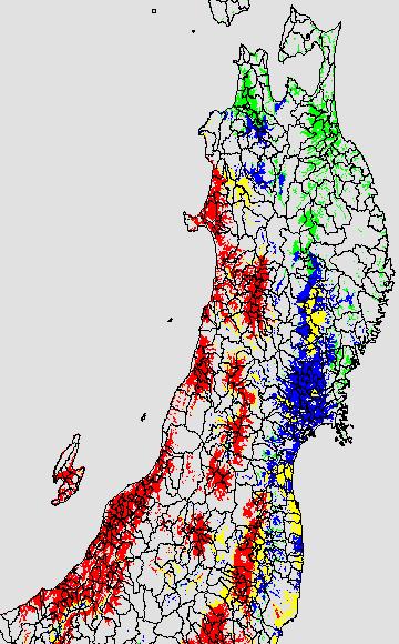 安全作期の策定にある気温指標のうち、いもち病蔓延可能日の平均気温指標20.0℃を用いて表示し、20.0℃未満については1℃刻みで表示します。過去7日の移動平均値で示す。いもち病の蔓延可能域を監視するものです。
