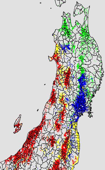 安全作期の策定にある気温指標のうち、いもち病蔓延可能日の平均気温指標20.0℃を用いて表示し、20.0℃未満については1℃刻みで表示します。過去7日の移動平均値で示す。いもち病の蔓延可能域を監視するものです。
