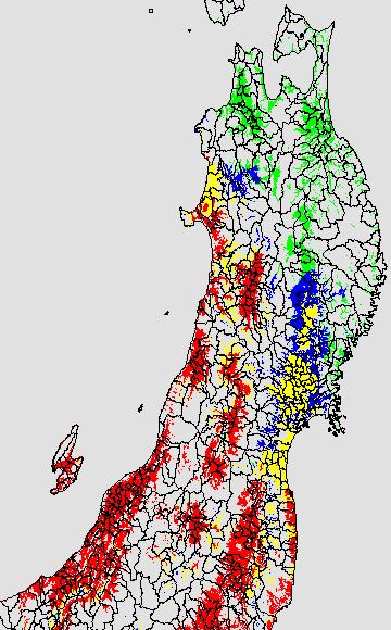 安全作期の策定にある気温指標のうち、いもち病蔓延可能日の平均気温指標20.0℃を用いて表示し、20.0℃未満については1℃刻みで表示します。過去7日の移動平均値で示す。いもち病の蔓延可能域を監視するものです。