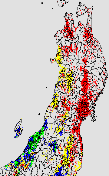 この時期平均気温が20℃以下になると、低温障害が発生しやすくなる。そこで、20℃を限界気温として、深水管理の必要な地域を特定する。また、平均気温が20〜21℃の地域も特に前歴深水管理を行う方が望ましい。この気温指標は前7日間の移動平均値で示す。