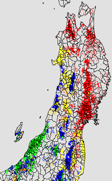 この時期平均気温が20℃以下になると、低温障害が発生しやすくなる。そこで、20℃を限界気温として、深水管理の必要な地域を特定する。また、平均気温が20〜21℃の地域も特に前歴深水管理を行う方が望ましい。この気温指標は前7日間の移動平均値で示す。
