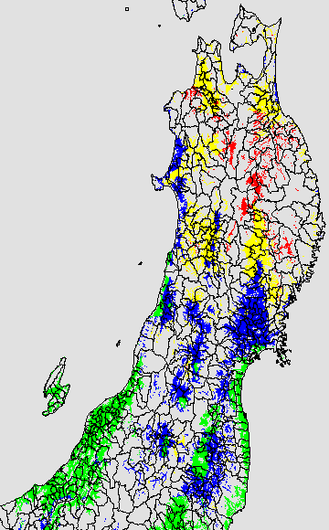 登熟停止が懸念される最低気温として、八柳(1960)は10℃を設定している。それを基に、極端な低温が来た地域の移り変わりを、最低気温の前3日の移動平均値で図示する。