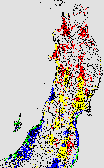 登熟停止が懸念される最低気温として、八柳(1960)は10℃を設定している。それを基に、極端な低温が来た地域の移り変わりを、最低気温の前3日の移動平均値で図示する。