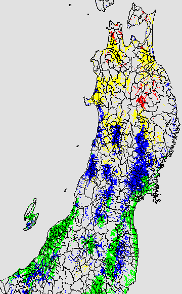 登熟停止が懸念される最低気温として、八柳(1960)は10℃を設定している。それを基に、極端な低温が来た地域の移り変わりを、最低気温の前3日の移動平均値で図示する。