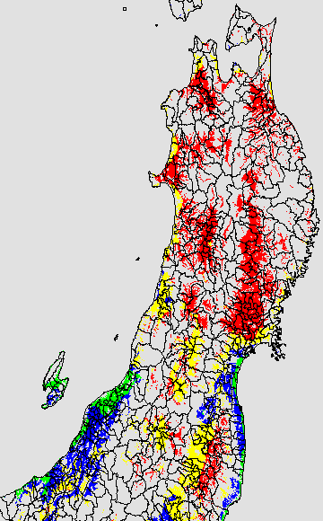 登熟停止が懸念される最低気温として、八柳(1960)は10℃を設定している。それを基に、極端な低温が来た地域の移り変わりを、最低気温の前3日の移動平均値で図示する。