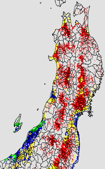 登熟停止が懸念される最低気温として、八柳(1960)は10℃を設定している。それを基に、極端な低温が来た地域の移り変わりを、最低気温の前3日の移動平均値で図示する。