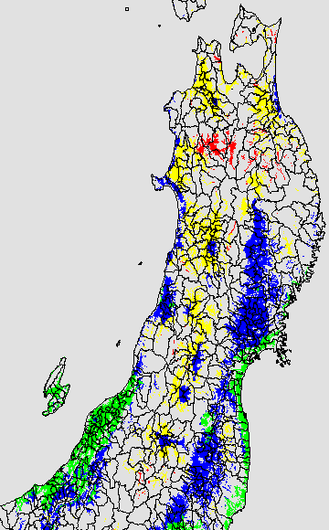 登熟停止が懸念される最低気温として、八柳(1960)は10℃を設定している。それを基に、極端な低温が来た地域の移り変わりを、最低気温の前3日の移動平均値で図示する。