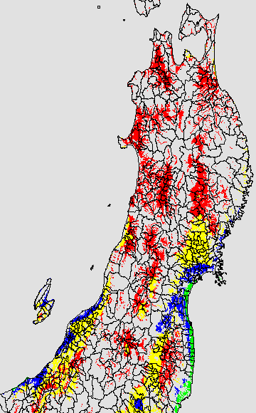 登熟停止が懸念される最低気温として、八柳(1960)は10℃を設定している。それを基に、極端な低温が来た地域の移り変わりを、最低気温の前3日の移動平均値で図示する。